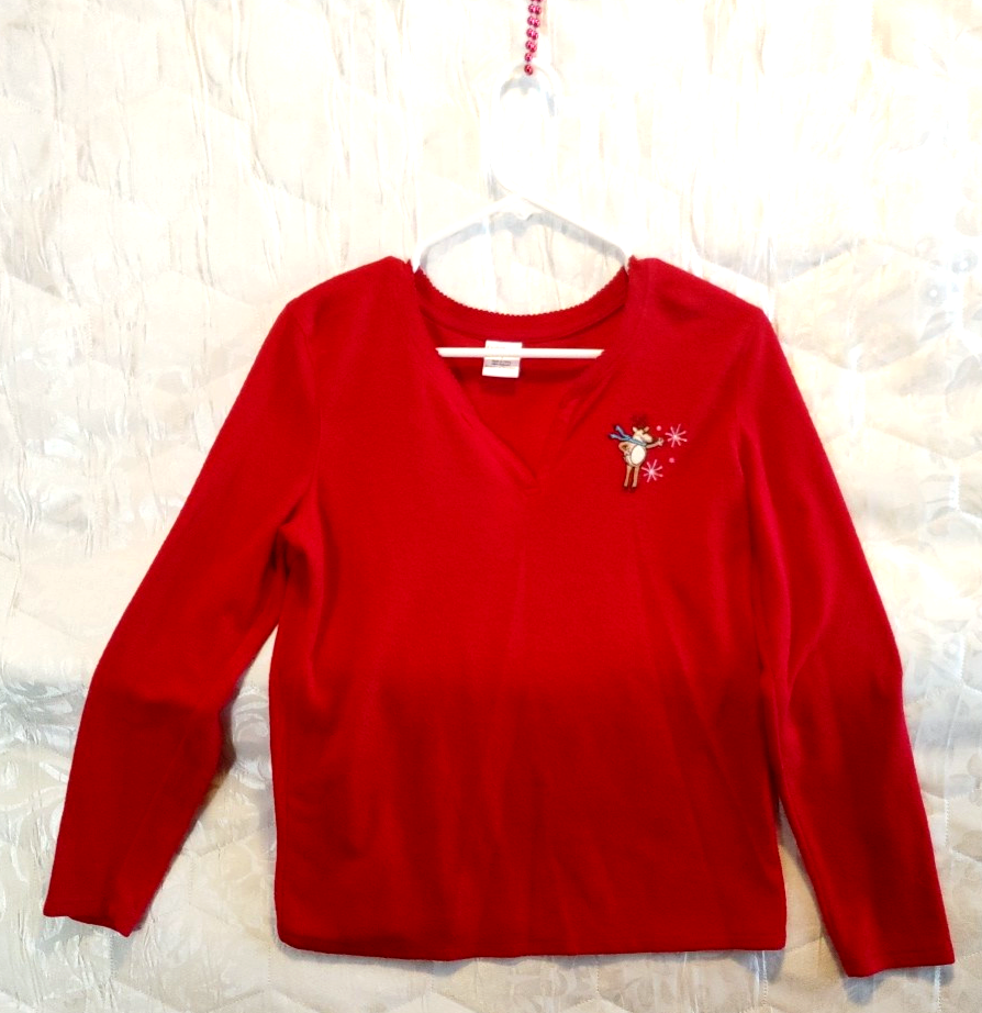This item was previously used and is sold "As Is". See title and photographs for details and imperfections. Croft & Barrow Red Small Pajama Set with Reindeer Print - As Is / CUTE! Elastic waistband is starting to get weak, but drawstring works fine.