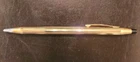 This Cross vintage ballpoint pen boasts a timeless design and premium materials. Crafted in the United States, it features 1/20 10k gold fill and a striking blue ink color. The pen is perfect for everyday use or as a collectible item for any pen enthusiast. With its classic design and high-quality construction, this pen is sure to impress. The brand, Cross, is well-known for their durable and stylish writing instruments. Whether you're looking for a personalized touch or simply want a vintage pen to add to your collection, this is the perfect choice.