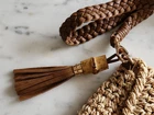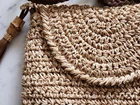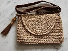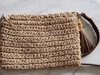 Crossbody Bag 100% Paper Straw Scalloped Crochet with bamboo tassel.
