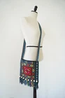 Crossbody Boho Hippie Bright Colorful Red Patch / Multicolored Bag Light weight Embroidered Unisex Bag 9' Deep / 9.5 Width