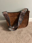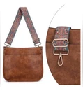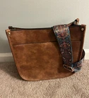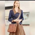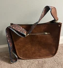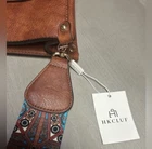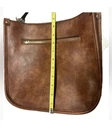 The HKCLUF Crossbody Bag for Women is a trendy and versatile accessory crafted from vegan leather in a stylish brown color with gold hardware accents. This medium-sized bag features a unique knit fabric type, a solid pattern, and a convertible design with a detachable strap for added convenience. The bag's adjustable crossbody strap and snap closure provide functionality while maintaining a fashionable look, making it suitable for various occasions such as travel, casual outings, or business meetings. Perfect for the modern woman on the go, this Crossbody Bag by HKCLUF, model Caitina, exudes contemporary style and practicality.. ** Missing zipper pull on outside pocket. Please see pictures for reference.