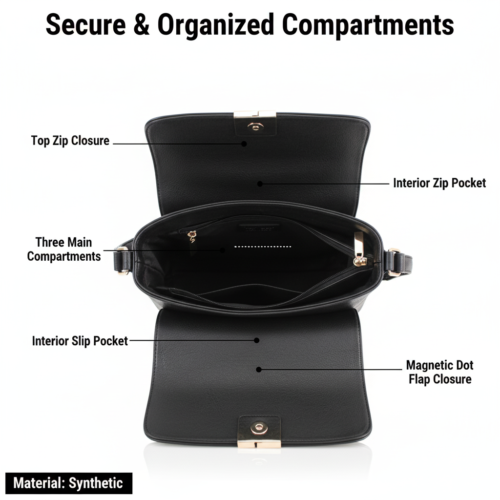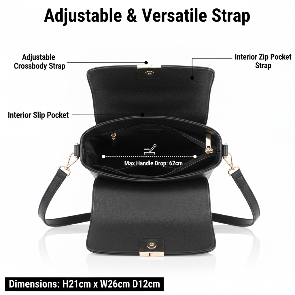 Stylish Ladies Crossbody Shoulder Bag Practical | Elegant | Everyday Use Key Features ✅ Top Zip Closure with 3 main compartments for secure storage ✅ Magnetic Flap Closure for extra safety ✅ Adjustable Crossbody Strap – comfortable to wear all day ✅ Interior Zip Pocket + Slip Pocket for small essentials ✅ Back Zip Pocket for quick access items ✅ Available in 12 Stylish Colours to match any outfit Specifications Type Crossbody Shoulder Bag Material Synthetic Dimensions H21cm x W26cm x D12cm Handle Drop Max. 62cm Colour Options 12 Colours Available Why You'll Love It ✔ Perfect balance of style and practicality . ✔ Ideal for daily use, work, shopping or travel . ✔ Lightweight yet spacious design. ✔ Makes a thoughtful gift for any occasion . 👜 Choose your favourite colour and enjoy the perfect everyday crossbody bag!