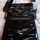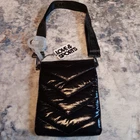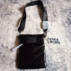 NWT This Love & Sports Olivia Crossbody Bag is perfect for travel or casual occasions. With a width of 7 inches, a height of 9 inches, and a depth of 7 inches, it's a small but practical size. The bag features a magnetic and snap closure, a detachable strap, and is made of man-made material with a black chevron pattern. It is like a puffy coat in purse form! The bag is water-resistant, lightweight, and has a padded interior with inner pockets for added organization. It also has an adjustable crossbody strap for comfortable and convenient carrying. The hardware is made of stainless steel and the bag is lined with black fabric. This bag is a great addition to any collection.