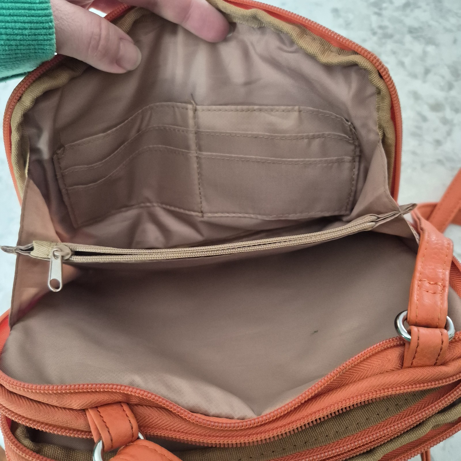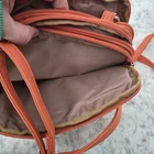 The Multi Sac Crossbody Bag Shoulder Bag in Coral/Orange is a stylish and versatile accessory for women. With a small oval shape and a lightweight design, this bag is perfect for travel, weddings, parties, casual outings, or formal events. The bag features an adjustable shoulder strap, inner pockets, and a zipper closure for security. The exterior is made of manmade material with antique brass color metal hardware, and the lining is a vibrant orange microfiber and fabric material. The bag has a solid pattern and character, making it a standout piece in any wardrobe.