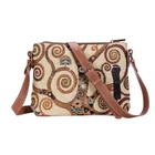 Signare Tapestry Crossbody bag in Gustav Klimt Designs A nifty tapestry satchel from crossbody bags for ladies category of products. · This cross body bag is ideal for your daily essentials and it is compactly designed in its appearance. · Choose from a range of famous classic art designs from Vincent Van Gogh, Gustav Klimt, Walter Crane and Hokusai. · Have the option to be worn as a crossbody or converted into a handbag or shoulder style bag. · Fastened with a zip top; the inside features a slip pocket and zip pocket for storage; whilst also containing a modest capacity for make-up and travel accessories. · Fitted with an adjustable (up to 56cm) and buckled faux leather shoulder strap. · Made from Signare tapestry woven fabrics. · Size approx. : W9.1” x H7.1” x D2.1” · WEIGHT: 0.56lb Please note: Design may vary due to our production methods