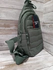 The Reebok Crossbody Bag THEA in Army Green is a small-sized bag designed for women, perfect for travel or casual use. It features a solid pattern with green accents on the crossbody strap and lining. The bag has a zip closure and is made of polyester material both on the exterior and interior lining. Additionally, it includes a detachable strap for versatility. With a compact size of 8" in width, 11.75" in height, and 3" in depth, this stylish and functional bag is ideal for carrying essentials on the go.