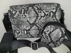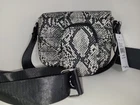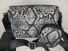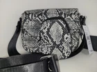 Elevate your style with the KENDALL + KYLIE Crossbody Bag, featuring a striking snake print that's sure to turn heads. This small-sized bag is versatile enough to complement any outfit, whether you're dressing for a casual day out or a formal event. Its unique hexagon shape and metallic finish add an edgy touch to your ensemble, while the white and black hardware provides a chic contrast. Crafted from premium cotton fabric, the bag ensures durability and a soft touch. The adjustable acrylic strap offers comfort and flexibility for all-day wear. Inside, you'll find a white fabric lining, providing a clean and sophisticated look. The bag also comes with a matching key and earbud case, ensuring your essentials are always within reach.
