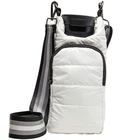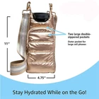 Adjustable insulated Strap Crossbody Water Bottle Bag Water Bottle Carrier Bag Keep Your Hands-Free — Stay hydrated when you're on the go with the HydroBag; This water bottle bag is ideal for busy people or when at festivals, sports events, traveling or walking the dog Never Lose Your Bottle — Reusable water bottles are pricey, ensure you never lose yours by keeping it safely stored in the HydroBag; This tote will also keep bottles from getting scratched or damaged Carries Essentials — Store your travel & daily essentials in the large double-zippered pockets; Designed to fit the largest cell phones, credit cards, Airpods & more; More practical than most small bags Large Waterproof Pocket — This puffer bag fits bottles 3.5-in or less in diameter; Protects your essentials from spilled water; Ideal for water bottles, reusable soda & coffee cups, & wine bottles Quality Material — Adjustable 2 inch wide strap distributes bottle weight; Lightweight, soft, & durable material; Stylish quilted fabric & trendy strap make this a must-have accessory & fabulous gift