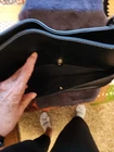 Black Veagan leather Crossbody with guitar strap Outside pocket. Inside zip pocket and 2 open pockets. Like new never used