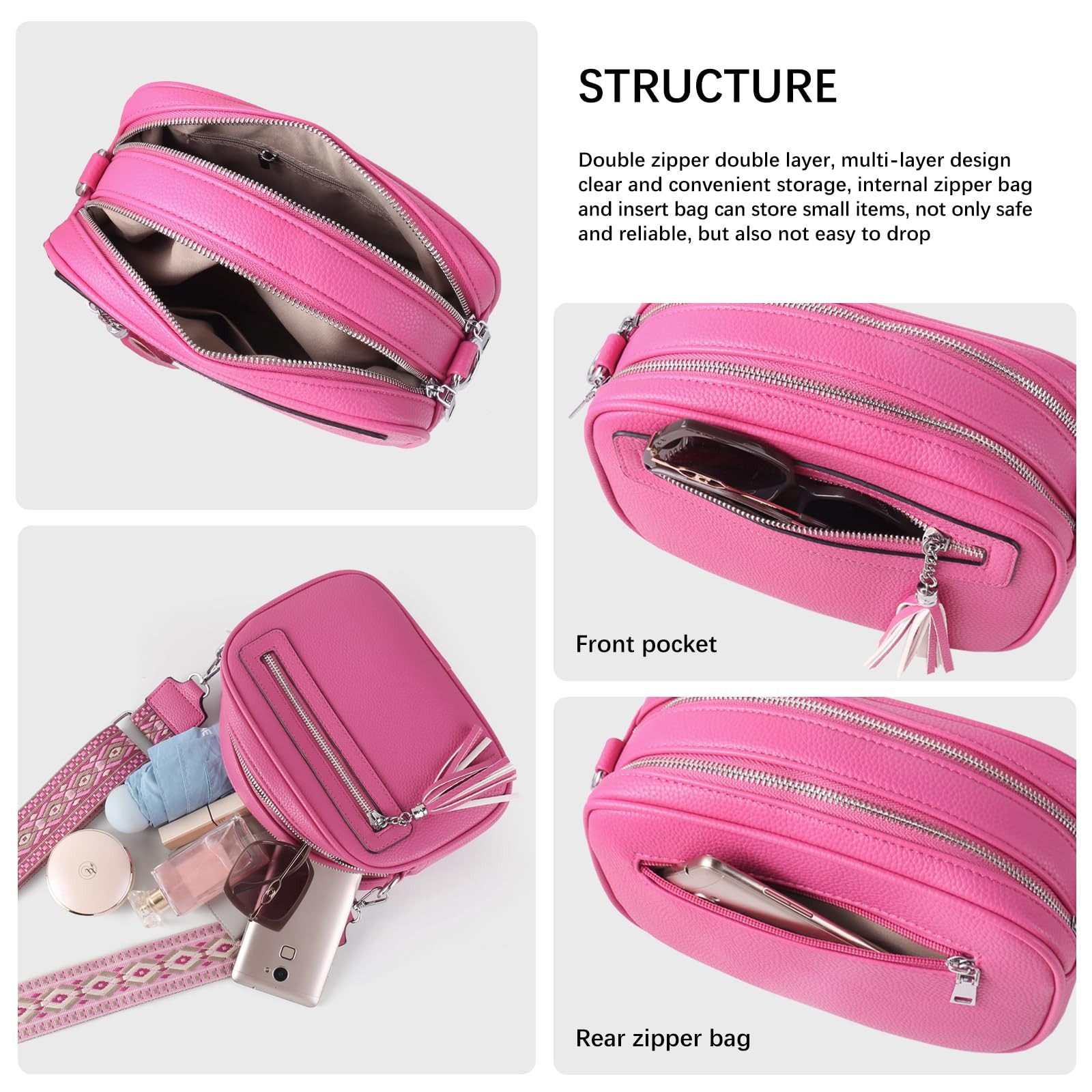 Elevate your style with this versatile crossbody bag for women. Crafted with a trendy design and a wide adjustable strap for comfortable wear, this small shoulder handbag offers ample space to carry your essentials. With its multi-compartment double zipper design, you can easily organize your belongings. The bag's dimensions are 9.5 inches long, 3.8 inches wide, and 6.5 inches high, ensuring a compact yet spacious interior. The 2-inch shoulder strap length allows for effortless carrying. This stylish purse can accommodate an umbrella, iPhone 15 Pro, power bank, cosmetics, headphones, and a wallet, making it the perfect companion for your daily adventures. Embrace fashion and functionality with this must-have crossbody bag. 【High-Quality Crossbody Bag for Women】:This crossbody bag is made of premium vegan leather, fabric lining and high quality hardware designed. The fabric feels soft, waterproof, and easy to clean. 【Multi-Functional Shoulder Purse】: It can be worn as a small crossbody purse, or as a shoulder or handle bag purse. This snapshot bag is great light weight and roomy to carry your daily belongings, such as cosmetics, keys, iPhone, cards, etc. 【Handbag Dimension】: The shoulder purse measures 9.5x3.8x6.5 inch. The designer has a stylish guitar strap with a 2inch. wide design, which will relieve your shoulder pressure. The strap is also adjustable and removable, you can adjust the length according to your needs. 【Shouler Bag Inner Structure】: There is a external back pocket + 1 external front zipper pocket + 2 internal main compartment + 2 internal patch pocket. Compact but roomy. Great for daily use. 【Perfect Gift Choice】: This women crossbody bag is suitable for all ages,it is an ideal gift for your lover, wife, friends, family at a birthday, Mother's Day, Christmas, Valentine's, wedding anniversary.