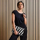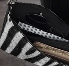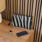 Maintain your fashion edge while enjoying hands-free convenience with our chic crossbody bag, featuring an all-over zebra skin print in shades of White and black. Crafted from high-quality faux leather, this bag is accented with sleek dark gray hardware. The zip-top closure and various interior pockets ensure your belongings are safe and well-arranged. Plus, with detachable wrist and shoulder straps, you can easily convert this bag to match any day-to-night ensemble. Complete the ensemble with a coordinating print sleeveless bodycon mini dress, lace-up or high-top canvas shoes, and a denim jacket from the Isiderio collection. • Outer fabric: faux leather • Lining: 100% polyester • 11″ × 8″ × 1.5″ (27.9 cm × 20.3 cm × 3.8 cm) • Dark gray hardware • Zip-top closure • Inside zip and slip pockets • Adjustable, removable wrist and shoulder straps • Strap drop length: 14″- 27″ This product is made especially for you as soon as you place an order, which is why it takes us a bit longer to deliver it to you. Making products on demand instead of in bulk helps reduce overproduction, so thank you for making thoughtful purchasing decisions!