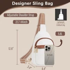 Crossbody Bags for Women Men, Small Sling Purses Bag Trendy, Beige Product Details Multiple Ways to Wear: This small sling bag for women can be worn over the shoulder, across the chest, or back. It can be used as a crossbody purse, sling bag, chest bag, or shoulder bag. The adjustable straps can be tightened or loosened to fit your size or activity needs. Multi-pocket Design: It has multiple pockets, including a main zip pocket with 5 card slots and an inner zipper pocket, an anti-theft back zip pocket, and a front zipper pocket. It's perfect for storing your phone, keys, wallet, and other small valuables you need for the day. The durable zipper design ensures that your belongings are safe, and the card slot makes it easy to find your cards when you need them. Waterproof & High-Quality Material: Made with high-quality faux leather and vintage style shoulder straps and lightweight and easy to carry, this crossbody sling bag for women is both functional and stylish. Measure as 8.4" X 12.6" X 3.4", Weight 0.66Lbs. Preferred Gifts & Best Travel Option: Women's crossbody sling Bag is suitable for dating, shopping, travel, and business negotiations, and is a special gift for mothers, girlfriends, wives, daughters, and friends on Valentine's Day, Mother's Day, anniversaries, and birthdays. This one is perfect for those who like to simplify and minimize things!