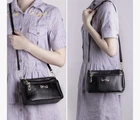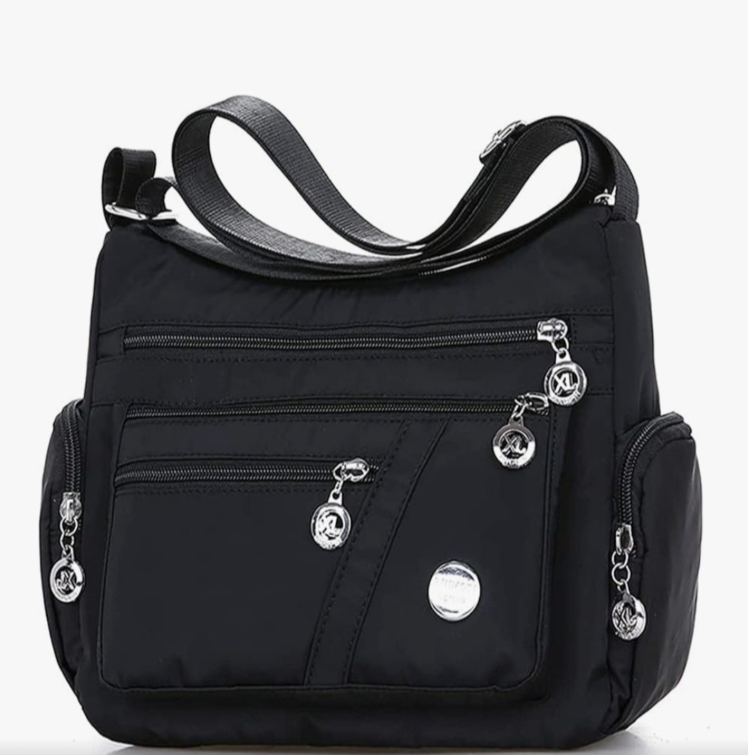 This small ladies shoulder bag is the perfect accessory for any woman on the go. Made from faux leather with a sleek black exterior and lining, this rectangular bag features a zip closure and adjustable straps for a comfortable crossbody style. It is ideal for travel and casual occasions, with a practical design that includes a pouch, coin purse, and bag charm. The black hardware accents add a touch of sophistication, while the RFID blocking and anti-theft features provide added security. Handmade with a modern design, this stylish shoulder bag is a must-have for any fashion-forward woman.