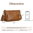 Leather Crossbody Bag: Crafted from genuine top grain leather, bronze hardware and YKK zipper, this crossbody bag offers a vintage and classic, but stylish and trendy feel Compact Size and Lightweight: With dimensions of 9.45" x 3.94" x 6.5" and a net weight of 1.17lbs, this shoulder bag is designed to be compact and lightweight for comfortable all-day carrying Triple Zip Pockets Design: The cross body bag features a well-organized structure with 1 front zipper pocket, 1 back zipper pocket, and 1 main zipper pocket, providing ample space for your essentials and ensuring the safety of your belongings Adjustable and Comfortable: The adjustable strap allows you to effortlessly switch between using it as a crossbody bag or a shoulder bag by changing the drop length from 15.4" to 25.2". The wide strap, measuring 1.45" in width, ensures a comfortable fit and adds a fashionable touch with its guitar strap style Versatile and Convenient: Whether you're going on a date, shopping, or enjoying everyday activities, this crossbody bag is perfect for any occasion. It provides hands-free convenience and keeps your belongings secure with its zipper closure