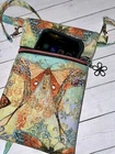 A small on the go purse for small articles like an iPhone, lip balm, and car keys. The colorful print has various large beautiful butterflies! The crossbody purse is handmade using a colorful high quality cotton fabric. It has an orange zippered closure for the main pocket with a metal flower charm zipper pull. The Strap with removable swivel clips measures approximately 54” long and is 1/2" wide. The purse measures approximately 8 ”x 5 1/4” x 1/2". This purse is perfect for just the small essentials and is lightweight (1.9 oz). Handmade in the USA. Message me if you would like more info or pictures!