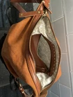 EUC Coated Canvas Rust colored crossbody bag measures 13"L x 12"H x 1/2"D, strap drop is an adjustable 21", zipper closure. Interior has one zippered pocket and two slip pockets. The interior is in excellent condition with no rips, tears, stains or odors. Please contact me with questions or if you need additional photos. Thanks for looking!