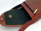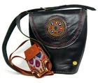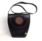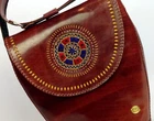 This Gorgeous Messenger bag / crossbody is made of genuine Sheepskin Leather. It has a spacious interior with one outer pocket and another zippered inner pocket. It has a magnetic snap closure and also features a Long carry handle, and an amazing soft silk cotton lining in complimentary print. A bold and classy standout shoulder bag, designer handcrafted product with all round appeal that comes with perfect execution, functionality , quality gold hardware, Logoised with the Tarini Brand label pin. Made in small numbers.This is an "ALL NEW" product and not upcycled etc. T There is a delicate pattern punched in the leather and large hand sewn details on the side.An embroidered patch adds the "wow" touch to the bags clean and simple contoured lines. The hand done punch work reveals the colored contrast underlay....A very Beautiful piece, made to last. Like all genuine leather will age well. It has a hard case feel. Available in 2 colors - Black and tan Brown. Size : 11.5 inch height, 10 inch Length at Top, tapers at bottom, 3.5 inch width. Strap is upto 42 inches. Ships worldwide, nominal shipping charges . For international postage we use track and trace with Standard Aus-post , to ensure safe delivery and peace of mind for our customers. From Tarini - Bags with Panache !