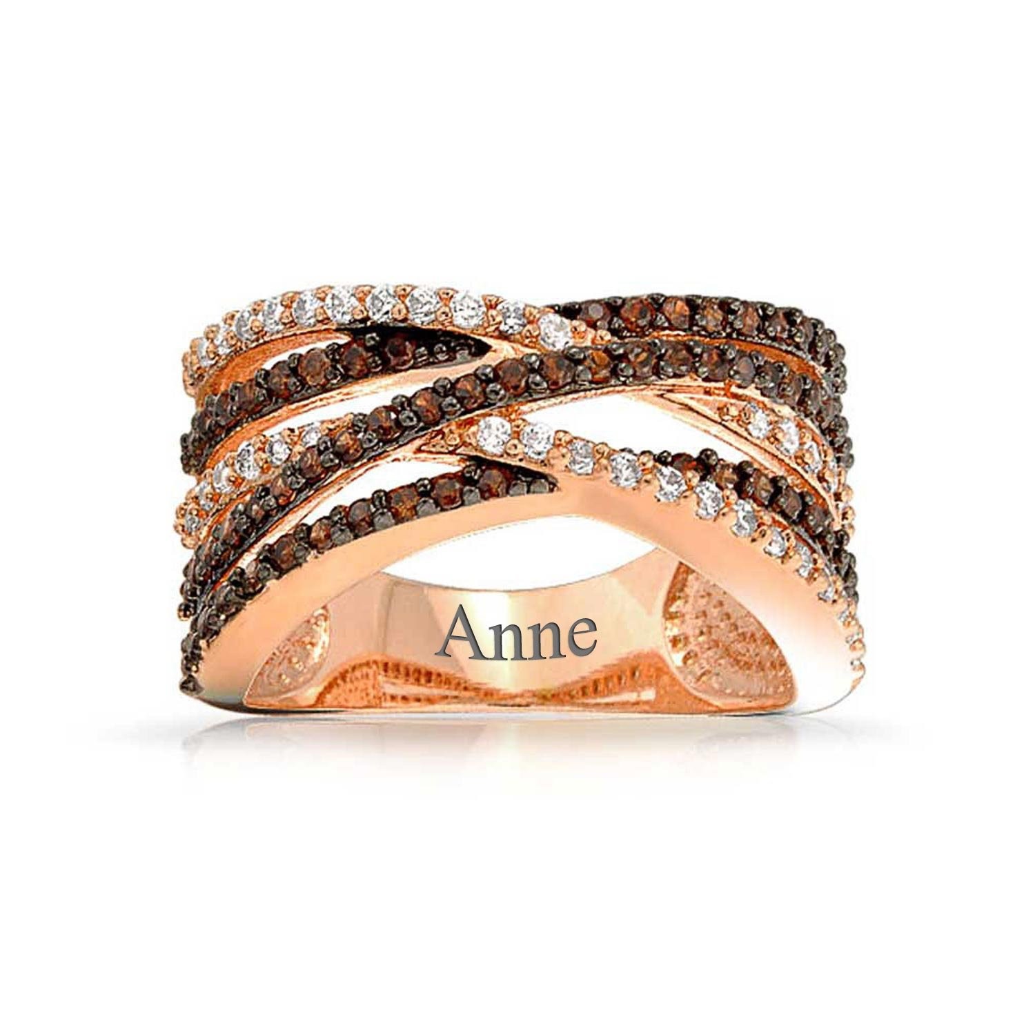 TWISTED STYLE - Exude confidence and flair with this cz pave criss cross cocktail ring. Featuring intricate rows of pave cubic zirconia in chocolate or rose, this ring is a trendsetter. Perfectly versatile, it effortlessly transitions from day to night, making a bold statement wherever you go. Measure: 12 MM Band Width, Weight: 5.48 Gram, Material: Anti-Tarnish Rhodium Rose Gold Plated Brass, Cubic Zirconia, HYPOALLERGENIC - Lead free Nickle-free. Eco-Friendly and Affordable: Choose Cubic Zirconia Jewelry. Express your love for both the Earth and your loved one with lab-created CZ, which minimizes the social and environmental impact of diamond mining. CZ jewelry is nearly flawless, indistinguishable from diamonds to the untrained eye. Thoughtful Gifts for Every Occasion: Whether its Mothers Day, an Anniversary, Wedding, Birthday, Holiday, Stocking Stuffer, Christmas, Valentines Day, or Graduation, our exquisite jewelry is the perfect present. Ideal for expressing your love to your Sister, Mother, Grandmother, Daughter, Wife, Girlfriend, Aunt, Mum, Mommy, Grandma, or even for yourself. Its the ultimate gift for anyone special in your life. USA-Based Company with 30-Day After-Sale Service: We take pride in our craftsmanship and product quality. Rest assured, if you receive an item with manufacturing defects, weve got you covered. Click on the link to contact our customer service.