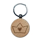 Crown with Heart Engraved Wood Round Keychain Tag Charm