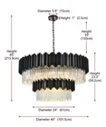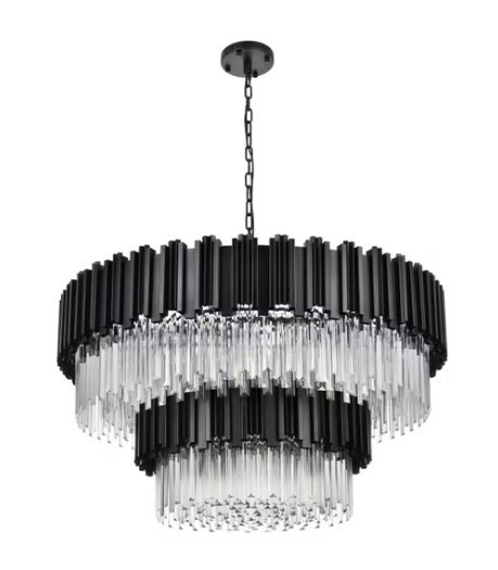 Dimensions and Weight Width: 40.00 in. Height: 23.30 in. Weight: 107.00 lb. Other Specifications Ships Via: LTL Freight Included Suspension: 59 inches of Chain. Minimum Hanging Height of 30 inches. Maximum Hanging Height of 85 inches. Warranty: Limited 1 year on finish and frame. Additional Details Chain Included 59 inch. Wire Included 150 inch. Design Information Category: Chandelier Finish: Black Crystal: Royal Cut Glass: Clear Crystal Bulb Information Bulbs Included: No Primary Bulb(s): 16 x 40 watts E12 Product Rating Voltage: 110V-125V Payment About us Return and feedback Delivery time Pay attention Payment International Buyers – Please Note: a) Import duties, taxes and charges are not included in the item price or shipping charges. These charges are the buyer's responsibility. b) Please check with your country's customs office to determine what these additional costs will be prior to bidding/buying. About us We are pleased to offer the most up to date items at competitive prices. You can rely on us to deliver the most on demand products within short timescales. Return and feedback We hope you love our product but if for any reason you want to return it or you’re not fully satisfied with your new product, please contact only Via eBay Message ,please Do not open case or return or left negative and neutral feedback,we can solve it happily by messaging. Delivery time 1.Items will be shipped to buyer's eBay registered address. Please confirm your eBay address before you make the payment. We don't accept to revise address after you make an order. 2.Items location is in China, due to geographical distance, please be advised that the international shipping usually take longer than domestic. Pay attention 1.please make sure you write correct address,we are not able to revise address after you make an order. 2.item maybe come with several packages,please message us if you only get part of them or something missing. 3.if there has accident,please do not open return or item not received case or left negative and neutral feedback before you contact only Via eBay Message ,we are glad to offer reasonable solution.