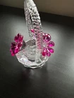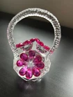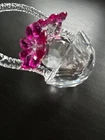 The Star Crystal Flower Basket is a stunning collectible featuring mini fuchsia flowers made of glass and crystal. This small-sized piece is perfect for any room, adding a touch of elegance with its pink color and intricate crystal details. Handcrafted in Türkiye, this flower basket is a beautiful addition to any decorative collection, showcasing a delicate and charming theme of flowers. Ideal for collectors or anyone looking to add a unique and eye-catching piece to their home decor. Measures approx. 2 1/4 X 4
