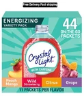 Crystal Light Energizing Variety Pack, 44 ct On-the-Go Packets Brand New Item. Free Fast Shipping . Products Description: The perfect caffeinated pick-me-up, no matter where you are! Crystal Light Energizing Variety Pack, 44 ct. On-the-Go Packets includes 11 packets each of natrually flavored peach mango with other natural flavors, artificially flavored wild strawberry, naturally flavored citrus and naturally flavored grape with other natural flavors drink mix. Every single-serve packet contains 60mg of caffeine, giving you an added boost of energy to conquer your day. With zero grams sugar and 90% fewer calories than leading beverages (Per 16 fl oz, this product is 5 -10 calories, leading beverages are 130 calories), Crystal Light is a great, guilt-free alternative to soda or juice. Each drink mix single makes one serving, allowing you to always keep some on hand. To prepare, simply empty one packet into a 16.9 oz. bottle or cup of water and shake or stir. Our caffeinated drink mixes are a great choice for when you are looking for a refreshing way to stay ahead of your busiest days. About this item: · A variety pack of 44 Crystal Light Powdered Drink Mix Singles with added caffeine · Crystal Light Energizing Variety Pack includes 11 packets of each fruity flavor including naturally flavored citrus, naturally flavored peach mango, artificially flavored wild strawberry, and naturally flavored grape. · Each packet contains 60mg of caffeine to help power you through the day · Made with zero grams sugar and 90% fewer calories than leading beverages for a hydrating refreshment . Per 16 fl oz beverage, this product 5-10 calories, leading beverages 130 calories. · Crystal Light Drink Mix is a refreshing alternative to soda and juice · Perfect for adults who are always on the go · Individual packets are small enough to fit in a purse, pocket or desk drawer, making Crystal Light a convenient way to help stay hydrated · To prepare, simply empty one packet into a 16.9 oz. bottle or cup of water and shake or stir to combine Instructions Directions: 1 packet makes 1 serving. 1. Empty 1 packet into 16.9 fl oz bottle of water, replace cap. Alternatively, empty 1 packet into tall glass and add 2 cups water. 2. Shake or stir until dissolved. Makes 1 serving. Do not store in metal container. Store prepared beverage covered in refrigerator. Safe Handling Instructions Refer to product label if applicable Ingredients WILD STRAWBERRY CITRIC ACID, MALTODEXTRIN, ASPARTAME*, CAFFEINE, CONTAINS LESS THAN 2% OF MAGNESIUM OXIDE, NATURAL AND ARTIFICIAL FLAVOR, ARTIFICIAL COLOR, RED 40, TOCOPHEROL (TO PROTECT FLAVOR), YELLOW 5, BLUE 1, SOY LECITHIN. CONTAINS: SOY *PHENYLKETONURICS: CONTAINS PHENYLALANINE CITRUS CITRIC ACID, MALTODEXTRIN, ASPARTAME*, SUGAR**, CAFFEINE, CONTAINS LESS THAN 2% OF MAGNESIUM OXIDE, NATURAL FLAVOR, SOY LECITHIN, ARTIFICIAL COLOR, YELLOW 5. CONTAINS: SOY * PHENYLKETONURICS: CONTAINS PHENYLALANINE ** ADDS TRIVIAL AMOUNT OF SUGAR GRAPE CITRIC ACID, MALTODEXTRIN, ASPARTAME*, CAFFEINE, CONTAINS LESS THAN 2% OF MAGNESIUM OXIDE, ARTIFICIAL COLOR, NATURAL FLAVOR, RED 40, BLUE 1. * PHENYLKETONURICS: CONTAINS PHENYLALANINE PEACH MANGO CITRIC ACID, ASPARTAME*, MALTODEXTRIN, CAFFEINE, MAGNESIUM OXIDE, CONTAINS LESS THAN 2% OF NATURAL FLAVOR, SOY LECITHIN, YELLOW 5, RED 40. CONTAINS: SOY *PHENYLKETONURICS: CONTAINS PHENYLALANINE Return & Exchange: We Accept return as per eBay Return Policy, Customer satisfaction is our priority. If there is a problem with your order then please contacts us, we will provide you the best solution. Return shipping is the buyer's responsibility unless the return is a result of our mistake. We will pay for shipping replacement back to you if an exchange is requested. Note: Customer satisfaction is very important to us. If you have any problem with your order, please contact us and we will do our best to make you satisfied, please do not a negative feedback before we resolve your problem, we guarantee that your issue will be solved quickly. This item cannot be shipped to AK, HI, Puerto Rico, FAA Address, APO, FPO, PO Box and outside of USA.