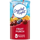Product Description Crystal Light Fruit Punch Artificially Flavored Low Calories Powdered 4 Pitcher Packet Drink Mix 1.36 Oz (Pack Of 2) It offers a classic fruit punch flavor for a refreshing taste. Each pitcher packet of powdered fruit punch mix in this 4 count canister is perfectly portioned to make 2 quarts or 1 pitcher of Crystal Light, so there's plenty to share with family and friends. Simply mix one packet of fruit punch powder with 8 cups or 2 quarts of water, stir, and enjoy! All the flavor and only 5 calories... just the way you like it. Crystal Light Artificially Flavored Fruit Punch Powdered Drink Mix delivers low calorie refreshment Each pitcher packet makes 5 servings or one 2-quart pitcher Made with zero sugar and 5 calories per serving for guilt-free refreshment Classic fruit punch flavor for a refreshing taste 90 percent fewer calories than leading beverages; this product 5 calories, leading beverages 70 calories Comes in a variety of sizes for all your beverage needs 4 ct. canisters of Crystal Light Artificially Flavored Fruit Punch Powdered Drink Mix Ingredients CITRIC ACID (PROVIDES TARTNESS), MALTODEXTRIN, CALCIUM PHOSPHATE (PREVENTS CAKING), ASPARTAME* (SWEETENER), MODIFIED CORNSTARCH, RED 40, CONTAINS LESS THAN 2% OF NATURAL AND ARTIFICIAL FLAVOR, POTASSIUM CITRATE (CONTROLS ACIDITY), ACESULFAME POTASSIUM (SWEETENER), SALT, ARTIFICIAL COLOR, BLUE 1, BHA (TO HELP PROTECT FLAVOR). *PHENYLKETONURICS: CONTAINS PHENYLALANINE. Nutrition facts Refer to the product label for full dietary information, which may be available as an alternative product image. 32.0 Servings Per Container Serving Size 1.900000 Amount per serving Calories 5 Amount per serving % Daily Value* Total Fat 0g 0% Sodium 10mg 0% Total Carbohydrate 0g 1% Sugars 0g Includes Added Sugars 0g Protein 0g Calcium 40.0mg 4%