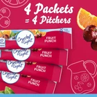 Product Description Crystal Light Fruit Punch Artificially Flavored Low Calories Powdered 4 Pitcher Packet Drink Mix 1.36 Oz (Pack Of 1) It offers a classic fruit punch flavor for a refreshing taste. Each pitcher packet of powdered fruit punch mix in this 4 count canister is perfectly portioned to make 2 quarts or 1 pitcher of Crystal Light, so there's plenty to share with family and friends. Simply mix one packet of fruit punch powder with 8 cups or 2 quarts of water, stir, and enjoy! All the flavor and only 5 calories... just the way you like it. Crystal Light Artificially Flavored Fruit Punch Powdered Drink Mix delivers low calorie refreshment Each pitcher packet makes 5 servings or one 2-quart pitcher Made with zero sugar and 5 calories per serving for guilt-free refreshment Classic fruit punch flavor for a refreshing taste 90 percent fewer calories than leading beverages; this product 5 calories, leading beverages 70 calories Comes in a variety of sizes for all your beverage needs 4 ct. canisters of Crystal Light Artificially Flavored Fruit Punch Powdered Drink Mix Ingredients CITRIC ACID (PROVIDES TARTNESS), MALTODEXTRIN, CALCIUM PHOSPHATE (PREVENTS CAKING), ASPARTAME* (SWEETENER), MODIFIED CORNSTARCH, RED 40, CONTAINS LESS THAN 2% OF NATURAL AND ARTIFICIAL FLAVOR, POTASSIUM CITRATE (CONTROLS ACIDITY), ACESULFAME POTASSIUM (SWEETENER), SALT, ARTIFICIAL COLOR, BLUE 1, BHA (TO HELP PROTECT FLAVOR). *PHENYLKETONURICS: CONTAINS PHENYLALANINE. Nutrition facts Refer to the product label for full dietary information, which may be available as an alternative product image. 32.0 Servings Per Container Serving Size 1.900000 Amount per serving Calories 5 Amount per serving % Daily Value* Total Fat 0g 0% Sodium 10mg 0% Total Carbohydrate 0g 1% Sugars 0g Includes Added Sugars 0g Protein 0g Calcium 40.0mg 4%