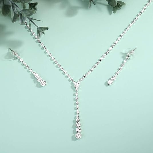 This stunning bridal jewelry set is absolutely gorgeous! The crystal rhinestones sparkle beautifully, and the silver alloy design looks elegant and luxurious. The necklace fits perfectly, and the matching earrings add a delicate touch. The craftsmanship is excellent—no sharp edges or tangles. Perfect for weddings, proms, or special occasions, and makes a thoughtful gift. The set arrived neatly packaged and ready to wear. Highly recommend for any bride or fashion lover!