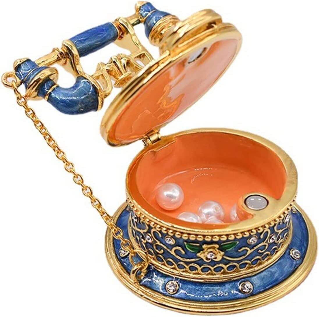 This is a metal and crystal ornament. It is 3.3 inches in diameter and 3.3 inches tall. Very suitable for collection, home decoration, and high-end gifts. To store your not big jewelry in style also is a good way. This antique telephone can be opened to reveal a small storage space inside, perfect for holding your little trinket or keepsake. This jewelry trinket box is a great way to store all of your most prized possessions. It has a clear top and bottom so you can easily see what you're grabbing. The top and bottom are lined with a shiny rhinestone trim. The inside has a tray where you can store your jewelry. This is a lovely, beautiful gift that's perfect for any occasion, like Christmas, Valentine's Day, a birthday, or Mother's Day. Don't hesitate to choose it and give it to your loved ones.