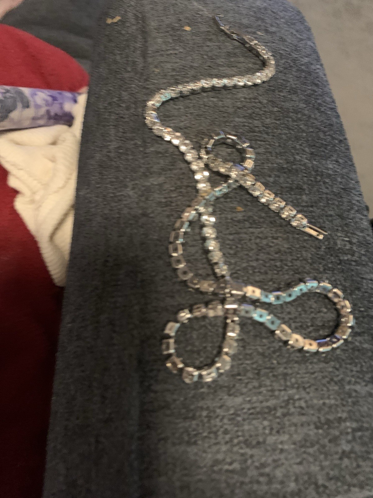 Very beautiful. NOT diamond. These are small crystals that actually look like tiny diamonds. But they are not valuable. This is a slightly vintage item. Worn only a few times.