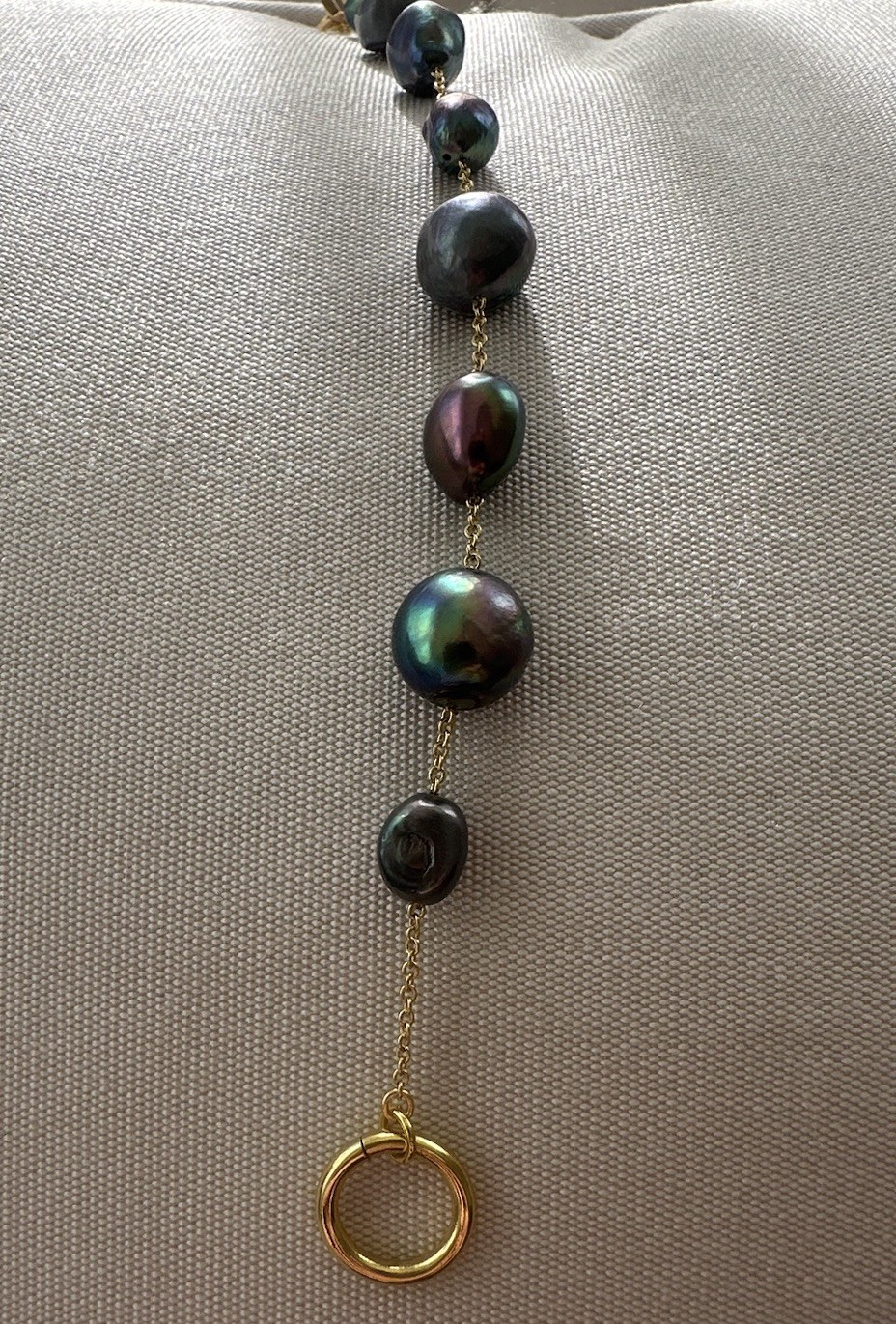 Elegant pearl bracelet; dainty yet charming. Can be worn by itself, or as a perfect addition combined with multiple bracelets. This is a very versatile piece. Whether it’s an everyday bracelet, or a statement piece on a night out, it brings sophistication to any look.