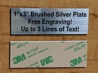 Custom Engraved 1"x3" Brushed Silver Plate w/ Adhesive Backing for Model Kit Shadow Box / Display Case (Up to 3 lines of text) ***DOES NOT INCLUDE MODEL KIT OR DISPLAY CASE, LISTING IS FOR THE ENGRAVED 1x3 PLAQUE ONLY*** Engraving Included! Adhesive-backing Included! Great for labeling Shadow Boxes, Display Cases, etc. Size: 1"x3"x1/16" Adhesive-Backed Color: Brushed Silver w/ Black Engraved Lettering Material: ABS Plastic Engraving Stock Easy to Order! After placing order, simply use the "Contact Seller" link and let us know the text you need engraved.
