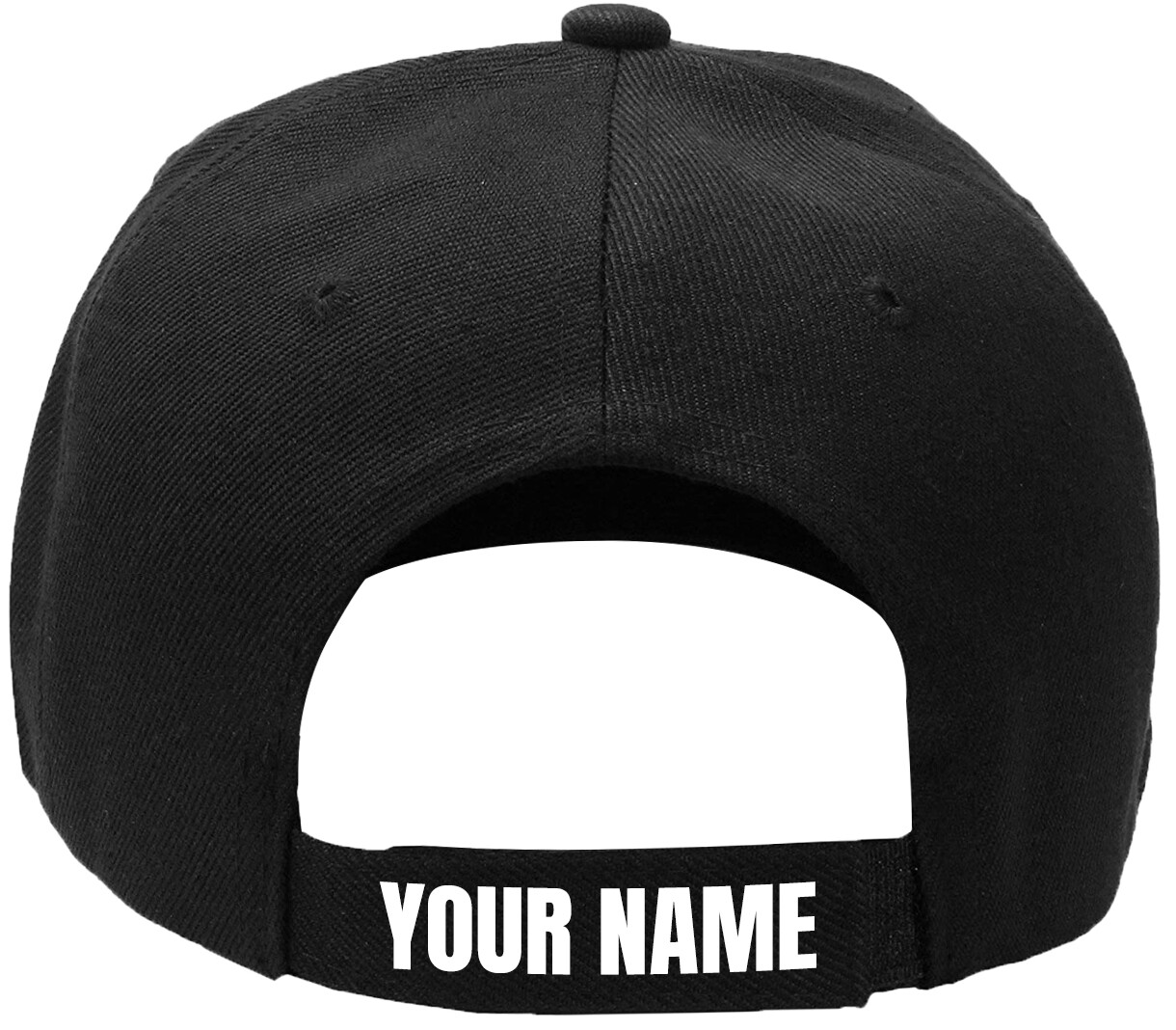 Design printed on the baseball cap is printed with heat transfer vinyl. Customize your hat with name printed on the back!