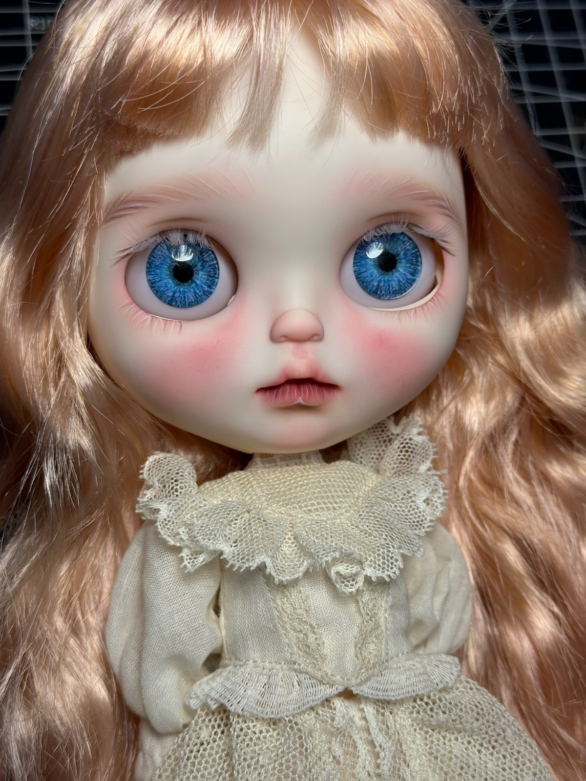 Product Details: You can choose between the brown scalp and the pale pink scalp in the picture. Please contact me to make a note. Size & Material: 12-inch (30.5 cm) collectible Blythe doll with factory-produced white skin and 19-joint articulated body for dynamic posing. Unique Craftsmanship: Hand-sculpted & modified face: Features professional grinding, reshaping, and hand-painted heart-shaped graffiti for a whimsical, one-of-a-kind (OOAK) aesthetic. Premium eye design: Includes 4 pairs of glass eye chips (1 pair with stretch effect) for customizable, expressive gazes. Inclusions: High-quality synthetic wig (style as pictured). Nude doll (clothing not included; doll arrives un dressed). Important Notes: Artisan-made imperfections: This is a handcrafted custom piece , so minor irregularities (e.g., paint texture, sculpting nuances) are natural and add to its uniqueness. No returns/exchanges: Due to the bespoke nature of the product, all sales are final.