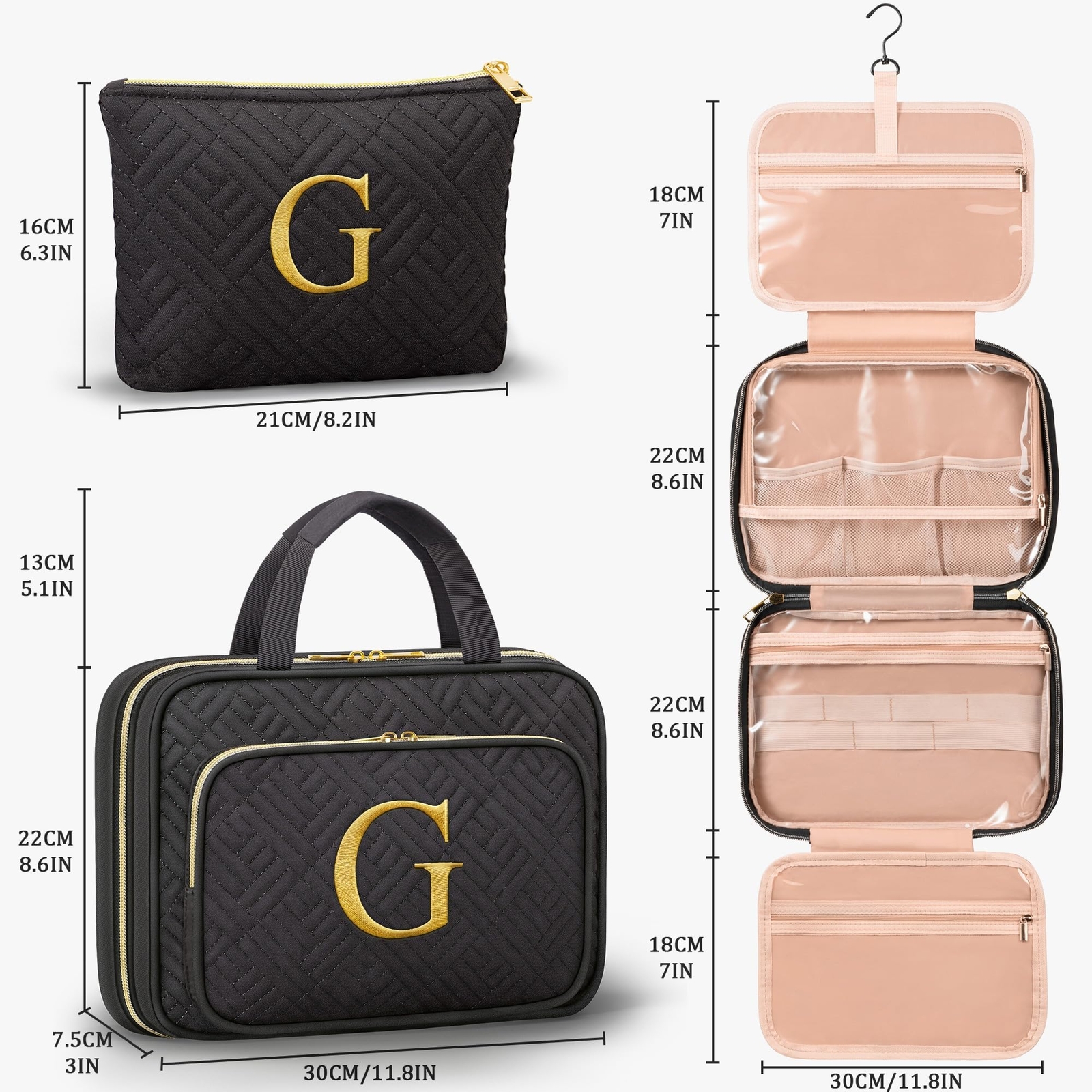 Personalized Birthday Gifts for Women - 2 PCS Initial Hanging Toiletry Bag & Makeup Bag with Embroidery Letter Travel Organizer Cosmetic Bag Easter Gift Ideas for Mom Wife Friend Sister Her Teacher TRAVEL TOILETRY BAG & MAKEUP BAG SET: Qinline hanging toiletry bag set was created with functional, offers comfort and durability specially designed for traveling women. This monogrammed gifts for teen girls stands up to your travel needs come with 1 large hanging toiletry bag(11.8 x 8.6 x 3 inch (rolled), 31.2 x 11.8 inch (open) ), 1 makeup bag(6.3 x 8.2 inch) which ample storage space that can easy hold all your travel item while is a stylish way to keep your travel beauty essentials organized PERSONALIZED BIRTHDAY GIFTS FOR WOMEN: One of the features of this chic toiletry bag monogrammed gift for women is the high-density embroidered initials, making it the best gift for women. Pair with our stylish & practical functionality travel toiletry container for an extra outstanding travel combo. Don't forget to pick up initial or special letter for women, mother, sister, friend, wife, auntie, teacher, her, female as a thoughtful Christmas gift, thank you gift, friendship gift, get well gift PREMIUM MATERIAL: The personalized women gifts bag come with a durable polyester peach skin outside & polyester cloth, water resistance PVC inside helping that from unexpected water spills and which is a plus for bathroom use. Quality zippers glide seamlessly, preventing snags and making it easy to open & close. Multiple stitching processes ensure that long-lasting usage. Whether it’s for travel, day trips, any vacations, this women toiletry cosmetic bag is sure to your favorite travel partner PACIOUS MULTI COMPARTMENTS & TRAVEL FRIENDLY: Travel toiletry makeup bags for toiletries is aim to maximum storage efficiency, features a 4 spacious compartment, 1 front pocket, 1 back webbing. 2 main zip compartments perfect for larger bottles and tubes. 2 fold out zip compartment is great for flatter items such as compacts makeup brush. The tight elastic bands can keep the bottles upright without mess. All compartment pair with transparent water-proof PVC makes everything clear for easy access STURDY HOOK & CONVENIENT DESIGNED: Equipped with 360 degree hanging hook, this travel toiletries bag for women can hanging anywhere such as towel rack, door knob and keeping stuff organized & dry and wet separation. Special 4-layer unfold design, It can fold and open quickly can find what you need, or you can fold it save space. Come with Lightweight handle, the travel makeup bag is easy to grab, and the back webbing secures effortlessly to suitcase rods, free your hands and easily travel ARIOUS OCCASIONS & GIFTS IDEAL: Qinline initial travel toiletry bag for travel is suitable for dating, traveling, short trip, hospital and any occasions or daily use. ideal gift for mom, daughter, sister, friends or family member, as well as birthday gifts, bridal shower gifts, mothers day gifts, wedding gifts, Thanksgiving gifts, Christmas gifts, and birthday gifts for best friends, love one and support. Qinline 100% satisfaction guarantee, any problem, feel free to contact us for solution SHIPPING Domestic Buyers - We have confidence in our products, but if you are not fully satisfied please contact us within 30 days of purchase and you will get full refund. - We ship within 3 business days of payment, usually sooner - We offer FREE shipping on all orders! - We only ship to the lower 48 states, no APO/FPO addresses or PO Boxes allowed International buyers – please note: Import duties, taxes, and charges aren't included in the item price or postage cost. These charges are the buyer's responsibility. - Please check with your country's customs office to determine what these additional costs will be prior to bidding or buying. * Order Cancellation Policy ** You can return a product for up to 30 days from the date you purchased it. 1. The seller reserves the right to cancel the special case only due to eBay cancellation fee. 2. The decision of seller is the final. 3. The seller will respond to the cancellation request within 2 business days. Please wait for the result of cancellation. 4. In case the cancellation is not completed by some reasons, the buyer can follow the options below to get the refund. 4.1 The buyer can reject the item when it arrives. 4.2 The buyer can send the item back to the seller within 30 days If the buyer receives item (USA Shipment ONLY). The seller will provide the FREE return label to the buyer when the buyer opens " Return Item" case on eBay by using the reason as "Change my mind" ONLY. 5. When buyer has placed the order. The order will be processed and completed by automatic warehouse system within 5 minutes. In case that buyer sends the cancellation request after 5 minutes of placing the order, the request will be rejected. **Sending direct message to cancel the order is not allowed for every case.* Return Policy For the return case - If buyer would like to return the items for refund or replacement, please CONTACT SELLER to receive the free return label from seller. The refund or replacement will be processed with the tracking number of return label which is provided by seller only. The other ways of return which are not approved by seller will not be processed for the refund or replacement.