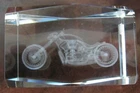 Custom Motorcycle Street Rod 3-D Photo Crystal Glass Decorative Paperweight 2 inches tall... 3" x 2" Wide/Long Back when the mall was open, there was a guy who sold these... For this size he charged $99 Shipping is $7