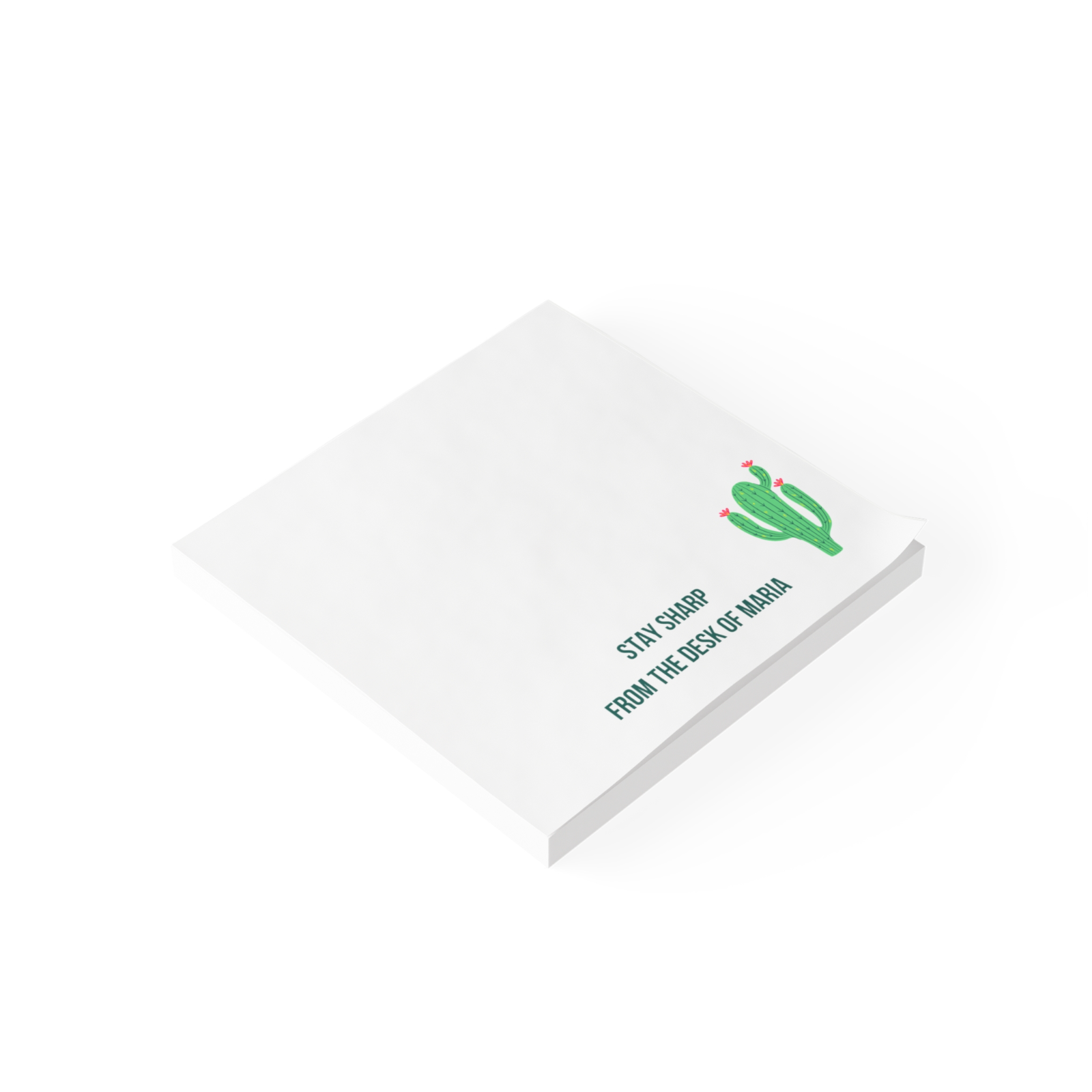 Customized 3M Post It notes! Each 50-sheet bundle is 3"x 3" personalized with your name or the recipient's name. The cute cactus design is also motivational for the recipient with a note of "stay sharp." Order these fun sticky notes for yourself or gift to a colleague! Also makes the perfect, small, unique everyday gift, back to school teacher gift, employee appreciation gift, mental health gift, and so much more! To customize, simply send me a message with the name as you would like it to appear on the sticky notes! .: One printed side, one design on all sheets .: 3M Post-it Note adhesive .: Branded Post-it Note backing sheet .: Each note pad includes 50 sheets .: Sustainable paper from FSC® and SFI® certified facilities 3" x 3" Width, in 2.99 Height, in 2.87