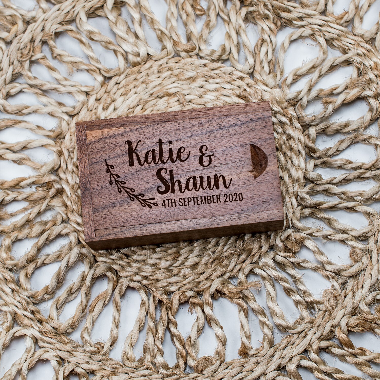 Wooden USB 3.0 Wedding Flash Drive Personalized Custom engraved 64GB Walnut Wood PRODUCT INFORMATION This listing is for one 64 GB Walnut USB 3.0 Flash Drive. Optional with box Flash Drive size: • Each Flash Drive measures approximately 2.36"x 1.2" x 0.3" (6 x 3 x 1 cm) • Each Flash Drive box measures approximately 3.14"x 1.95" x 0.98" (8cm x 50 cm x 2,5 cm) • Formatted To work on both Mac and PC computers Material: Walnut Wood PURCHASE INSTRUCTION 1. Add this listing to your cart 2. Write down in Personalization • Names • Date 3. Upon receiving your payment, we will begin to customize your order. 4. Our production time is usually 1-5 business days. We ship Monday to Friday except on Holidays. PLEASE NOTE Each Flash Drive will have its own individual figure and color. We welcome any special requests you may have. Just send us a quick message. PERSONALIZED Each Laser Cut and Engraved Wooden Flash Drive is personalized with your names and the date of the wedding SATISFACTION If you want a digital proof before production begins, please contact me.