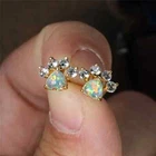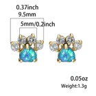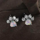Cute Animal Paw Design With Shiny Opal Decor Stud Earrings Cute Y2K Style Copper