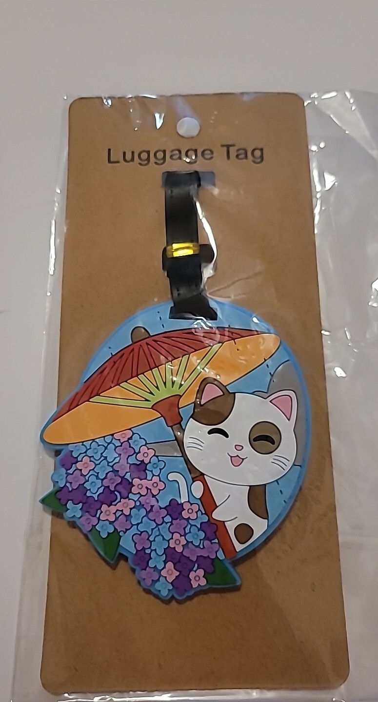 Cute Cat with Umbrella Flower Silicone Luggage Tag for Vacation Travel