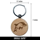 Cute Chibi Striped Dolphin Engraved Wood Round Keychain Tag Charm