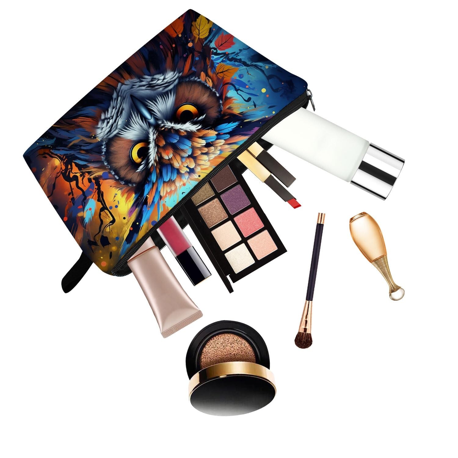 Owl Present Owls Makeup Bag Cute Small Organizer Bag with Zipper Colorful Owl Print Cosmetic Bag Birthday Presents for Owl Lovers Women Sisters Friends Product Details Material Type: Polyester Item Weight: 35 Grams Item Dimensions L x W x H: 8.65"L x 1.77"W x 4.72"H Brand Name: YULUENZE Style: Printed Makeup Bag With a Metal Zipper Pattern: Owl Color: hzt0168 Closure Type: Zipper 1.The Owl Makeup Bag is made from durable materials. Polyester fiber makes the bag have the characteristics of both durability and softness. Metal zipper ensures the security of your personal stuff. 2.The Owl Makeup Bag has an appropriate size. It has a length of 8.65 inches, a height of 4.72 inches and a width of 1.77 inches. And its weight is about 25 grams. Not too big but enough to hold your makeups, stationery or toiletries. Not too small but proper to be put in your daily bags and suitcases. 3.The Owl Makeup Bag has a delicate design and a vivid double-sided print. You can choose different patterns in our store. They can not only fit public aesthetic but also meet personalized demand. 4.The Owl Makeup Bag has various target audiences. People of different ages and genders can take the bag. You can also give it as a gift to your mothers, grandmothers, aunts, sisters, cousins, spouses, friends on Womens Day, Mothers Day, Christmas, New Year, Valentines Day Birthday and other special days. Anybody who receive it will definitely feel surprised and satisfied. Because it is not only cute and ornamental, but also practical and durable. 5.The Owl Makeup Bag has plentiful usage scenarios. For example, you can take it as your toiletry organizer, stationery bag, coin purse, cellphone bag, medicine storage bag and so on. Different uses for you to find out! YULUENZE Owl Makeup Bag for Women. The makeup bag is made from soft polyester with a metal zipper and has a perfect size. The printed patterns on the bags are colorful and vivid. The makeup bag is durable, cute, practical and multi- functional. It is able to hold your makeups, toiletries, brushes, art tools, mobile phones, coins, keys, cards, medicines and so on.