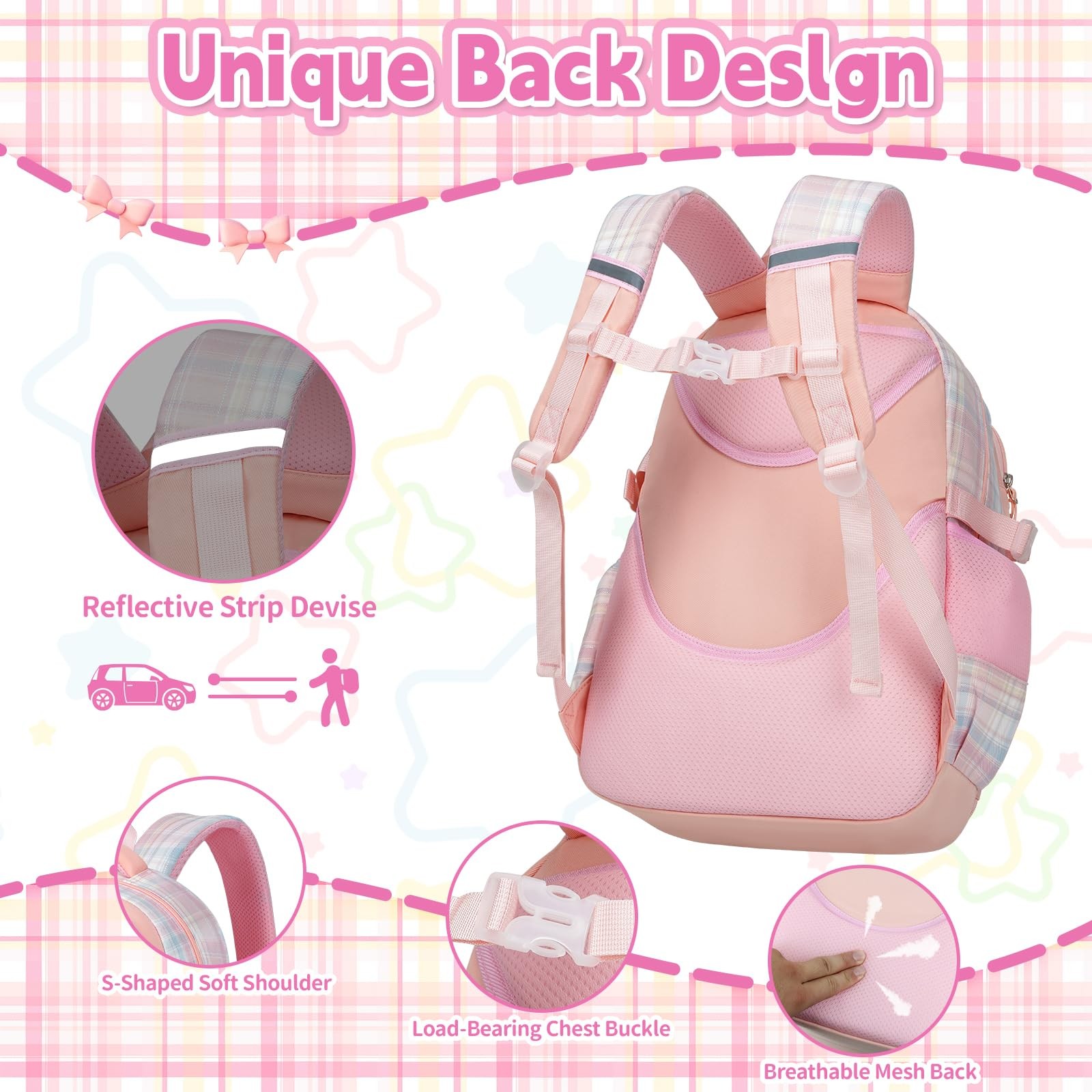 Highly recommended for those in search of a delightful, lightweight, and resilient 5-piece school bag set This charming set is an ideal choice for teenage girls and anyone seeking a fashionable and functional accessory 【Product Description】 1. Ample capacity: Perfect for carrying laptops, books, school supplies, magazines, clothes, and more 2. Material: Crafted from premium-quality, waterproof nylon fabric to ensure lasting durability 3. Colors: Available in Pink, Black, Blue, and Purple, offering a variety of stylish options 4. Size: - Backpack: 17.7"(H) * 12.2"(L) * 5.9"(W) - Lunch bag: 9.4"(H) * 8.2"(L) * 3.9"(W) - Pencil case: 4.3"(H) * 8.6"(L) - Crossbody bag: 7.9"(H) * 6.5"(L) - Coin purse: 5.5"(H) * 3.9"(L) Perfect for Various Occasions: Whether it's school, gym, sports, travel, hiking, camping, or everyday use, this set is your trusty companion Recommended Age: Suitable for children aged 6-12 【Product Service】: 1. Please note that the provided size information may slightly vary due to manual measurements 2. Have any questions before making your purchase? Feel free to contact us via email, and we will promptly respond within 24 hours 3. Our cute 5-piece girl's school bag set is crafted with utmost care using high-quality materials, ensuring long-lasting satisfaction. However, if you encounter any issues or are unsatisfied with your purchase, please reach out to us via email. We are committed to resolving any concerns and ensuring your complete satisfaction 【Girls Backpack with Lunch Box Set】Upgrade your child's school essentials with our unique set, including a backpack, lunch bag, pencil case, crossbody bag, and coin purse. This comprehensive set offers style and functionality, ensuring your child is fully equipped for school. Give your child the ultimate school accessory set that combines practicality and fashion 【Multi-Compartment Cute Backpack】Our cute backpack for girls features a large front pocket with a 180-degree opening, as well as hidden inner pockets and a laptop-padded sleeve. The front tool pockets provide multiple compartments for easy organization of essentials and small items. This practical backpack helps kids find what they need quickly 【Unique and Well-Designed】The Kawaii Backpack for School measurement: 17.7"(H)*12.2"(L)*5.9(W),and the lunch bag measures: 9.4"(H)*8.2"(L)*3.9(W), the pencil case: 4.3"(H)*8.6"(L), crossbody bag: 7.9"(H)*6.5"(L), and coin purse: 5.5"(H)*3.9"(L). Our Backpack Set It is a 5-piece set combination, Whether it's for school, camping, travel, hiking, or other outdoor activities, this backpack Set is versatile and stylish 【Waterproof & Durable】Our cute backpack is made of waterproof, lightweight, and odorless nylon fabric with a polyester lining. It protects items from drizzle and is easy to clean. The wide and thick S-shape straps are well-padded and adjustable for comfortable carrying. High-quality workmanship and smooth zippers ensure durability 【Versatile Design for All Ages & Occasions】Our backpack for girls is suitable for various age groups and occasions, from kindergarten to high school, university, and travel. While recommended for children aged 6-12, its timeless appeal makes it suitable for a wider range of ages