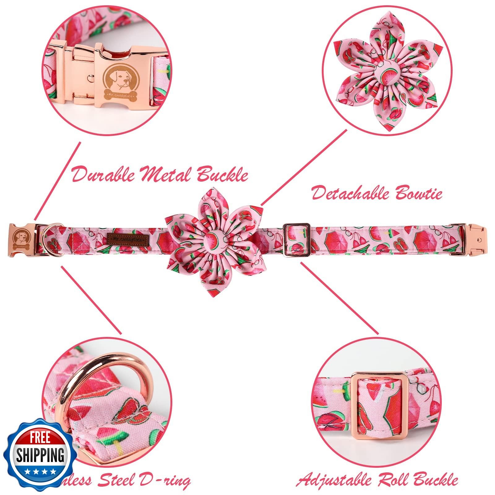 MR.CHUBBYFACE Summer Dog Collar with Flower, Cute Watermelon Pet Collar with Metal Buckle, Adjustable Durable Puppy Collar for Small Medium Large Dogs Features Material: The dog collar is made of 100% cotton, providing a light and breathable experience for your dog Design: The collar features cute double bowties with hand-sewn details and elastic straps Removable Accessory: The bowtie can be detached and fastened to any collar, making it a versatile accessory Buckle: The collar has a durable metal buckle with a safety snap-on feature for easy removal Adjustable Size: The collar is adjustable and suitable for small, medium, and large dogs with measurements in the product description Shipping Free & Fast Shipping: We offer free shipping to most of the USA with a normal delivery time of 3-7 days. However, due to the current situation, additional delivery time (up to 3 weeks) may be required for some items. Alternative Carriers: We may use alternative carriers (e.g., USPS, FedEx, UPS) to ensure your package arrives safely and on time. Due to the use of multiple carriers, we are unable to provide a tracking number automatically. Handling Time: Orders are processed and shipped within 1-2 business days of receiving cleared payment. Shipping Restrictions: Shipping to Alaska, Hawaii, Puerto Rico, Guam, and other US territories may incur shipping charges or delivery restrictions. Please contact us before ordering, or your order can be refunded/cancelled. State Restrictions: Certain items may not be shipped to California due to state regulations. Contact for Tracking Updates: If you require tracking updates or have any concerns about the delivery of your order, please feel free to contact us, and we will be happy to assist you. Return Policy 30-Day Hassle-Free Returns: If you are not completely satisfied with your purchase, you can return the item for free within 30 days of receiving it for a full refund or exchange. Easy Return Process: Contact us, and we will provide you with a prepaid return shipping label and detailed instructions. No Restocking Fee: There are no restocking fees for returns. However, the buyer is responsible for return shipping costs if the return is not due to a seller"s error. Refund Processing: Refunds will be processed within 1 business day of receiving the returned item in its original condition. Feedback Your feedback is extremely important to us. We strive to provide the best products and customer service possible. If you are satisfied with your purchase, please take a moment to leave us a positive review. If you have any concerns or issues with your order, please contact us before leaving negative feedback. We are committed to resolving any problems and ensuring your satisfaction. Contact Us If you have any questions or concerns, please feel free to reach out to our customer support team. You can contact us through the eBay messaging system. We are available Monday to Friday, 9:00 am to 5:00 pm EST, and we will do our best to respond to your inquiry within 24 hours. Thank you for supporting our small family business!