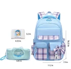 5-Pack Set: Stylish Plaid Bow Backpack / Girls Wallet / Pencil Bag / Keychain / Mood Pin. This 5-pack set includes a stylish plaid bow girls' backpack, wallet, pencil bag, keychain, and mood pin. The backpack measures 11.3"x7.1"x16.5" (LWH) and features a padded compartment sleeve that fits 14", 15", and 16" tablets or laptops. Durable and Stylish: Crafted from quality waterproof polyester, this middle school backpack is both durable and rain-resistant. Premium metal zippers ensure long-lasting use. Lightweight and fashionable, it’s perfect for casual and student use, offering a multifunctional design ideal for girls and ladies. Spacious and Organized: The large-capacity multi-layer space design allows for organized storage of daily work, study, or travel items. The main compartment fits a 15.6-inch laptop, while three exterior zipper pockets and one large pocket provide additional storage. Water bottle pockets on both sides make it easy for your little one to access their laptop, books, and other essentials. Ergonomic Design: This girls' school bag features an ergonomic design with a super soft, breathable back panel filled with sponge. It reduces back pressure while ensuring breathability, promoting healthy growth for children. Perfect for Ages 6 to 14: Recommended for girls aged 6 to 14, this school backpack is great for elementary school, outdoor activities, shopping, and travel. It’s a must-have for the back-to-school season and makes a wonderful gift for your daughter on her birthday, Christmas, Easter, or New Year.