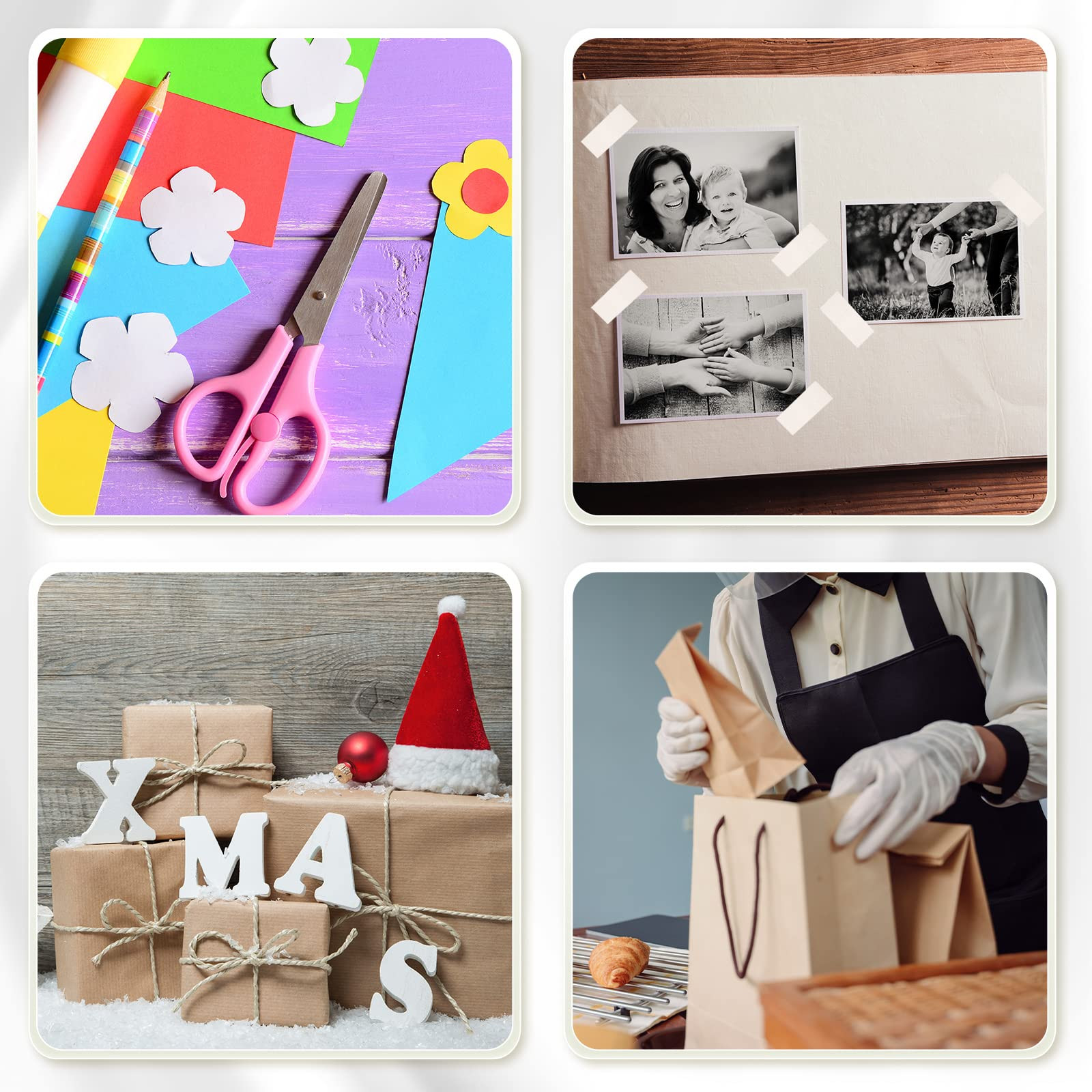 Nice Combination: the package comes 1 piece packing tape dispenser and 12 rolls of tapes, practical combination is meeting your daily needs and replacements, you can share them with your friends and children Size Details: the tape dispenser measures approx. 3.94 x 2.36 x 1.57 inches, and each roll of tape is 1.8 cm x 25 meter/ 0.71 x 82 feet, proper size is convenient for you to and carry, you just put them in your bag Easy to Cut: the rustic tape dispenser has a serrated cutting edge, making it easier to cut tape, you can cut the tape into any length according to your needs, simple to operate, without any other tools Tightly Stick to Most Objects: tape rolls for dispensers are designed with strong adhesion, acrylic adhesive material makes them tightly stick to most objects and surfaces such as paper, cardboard, etc., no worries of constantly falling off Proper Applications: the clear tape rolls dispensers can cut gift wrapping tape, double sided tape, fixed tape, transparent tape and more, consequently, they are proper for office, home, school, , restaurant and other places where tapes are needed