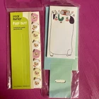 Set of 10 sticky notes A variety of styles, all different, as shown Including dogs, cactus, donuts, little lamb page markers, and more. New, in clear cellophane packaging.