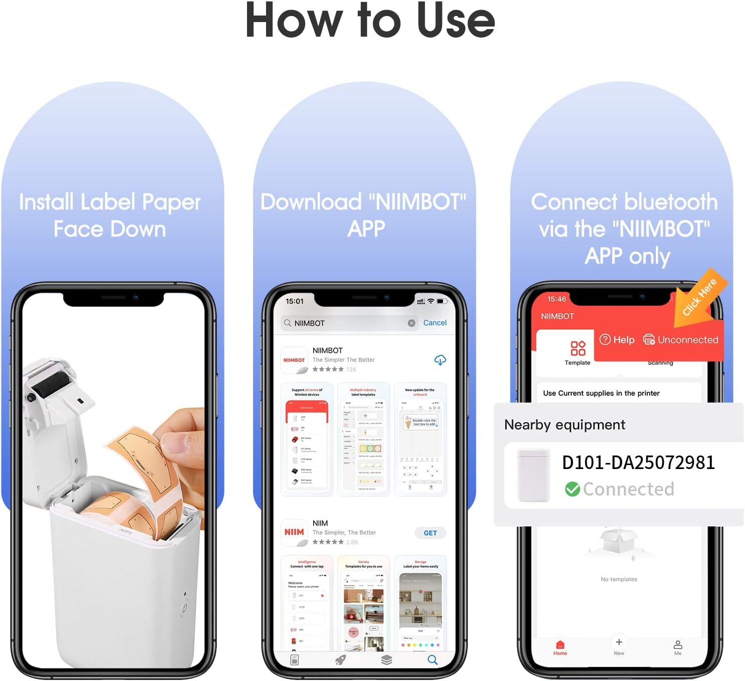 About this item 2 in 1 Label Printer - This label maker machine supports label widths from 0.4'' to 1'' with a removable separator. You can print 0.5-inch name, switch, and cable labels using the separator, or print 1-inch price tags or product labels by removing the separator. NOTE: Cannot print 2 rolls of labels concurrently! Inkless Label Maker - No need to buy toner or carbon tape! This wireless label maker printer uses thermal tape measuring 0.5 x 1.57 inches (12 x 40 mm). Compatible with 12-15mm labels. The thermal label printer supports gap and clear labels, with label paper that is water-, abrasion-, and oil-resistant, features strong adhesion, and is BPA-free. Easy to Use - Not compatible with iPad. Print using the app available on the App Store and Google Play. Turn on the label printer and enable Bluetooth connection. Select and connect to the correct printer model within the app, then start printing. Compatible with Android and iOS devices. Free Multifunctional App - The free edit app can automatically identify label paper size via RFID. Customize your own labels by adding various content such as text, barcode, QR code, tables, images, Excel files, time, figures, lines, and symbols. Supports multiple fonts and allows adjustments of size, formatting, alignment, and spacing. Powerful Thermal Label Maker - Device dimensions: 6.3"D x 4.3"W x 2.7"H. Equipped with a 1200mAh rechargeable battery, it can last up to 2 months on a single charge, eliminating the need for frequent battery replacements and offering an environmentally friendly solution. Size: 6.3"D x 4.3"W x 2.7"H