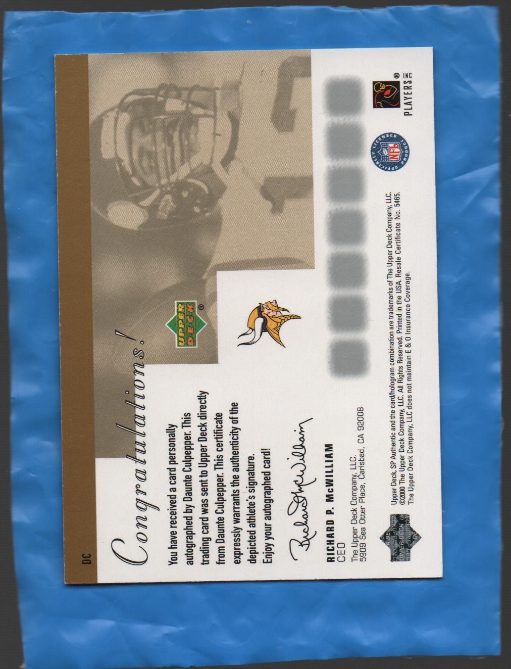 CULPEPPER SIGN OF THE TIMES AUTO ON CARD S/H 1.50 WILL SHIP SECURELY IN A SLEEVE AND TOPLOADER IN A NON MACHINABLE ENVELOPE